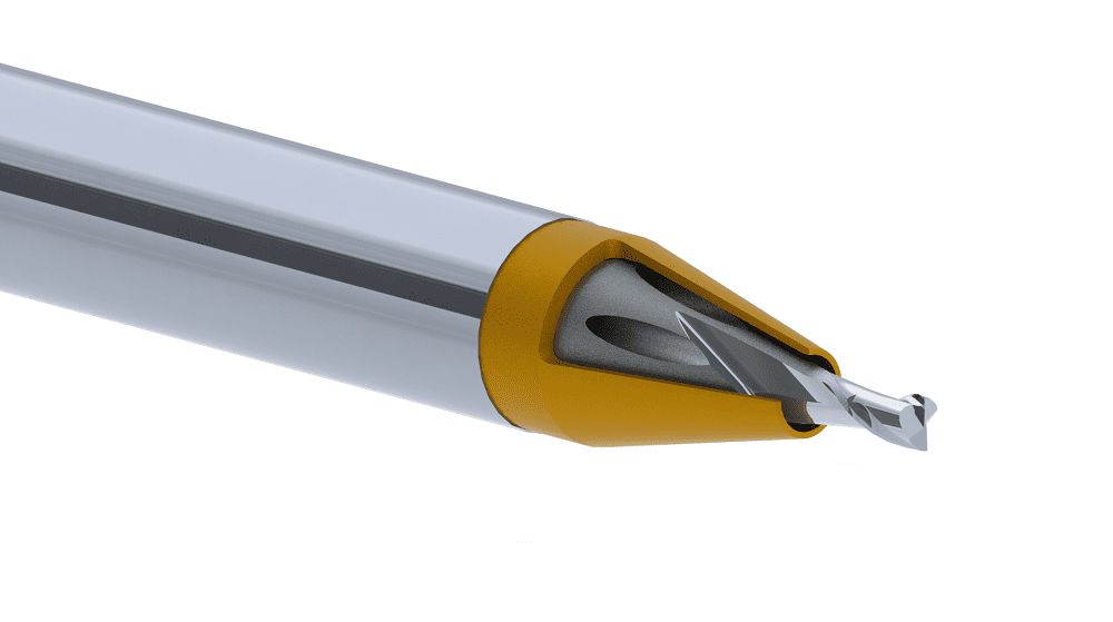 De ce fait, les fraises de petites dimensions rencontrent de nombreux problèmes d’usure et de performances lors des opérations d’usinage, telles que le rainurage et l’usinage de poches. Pour toutes ces raisons, Dixi Polytool a développé, mis au point et déposé un brevet selon le concept Dixi Cool+. Le fabricant suisse propose un concept révolutionnaire pour ses microfraises de haute performance Dixi 7442 Cool+.