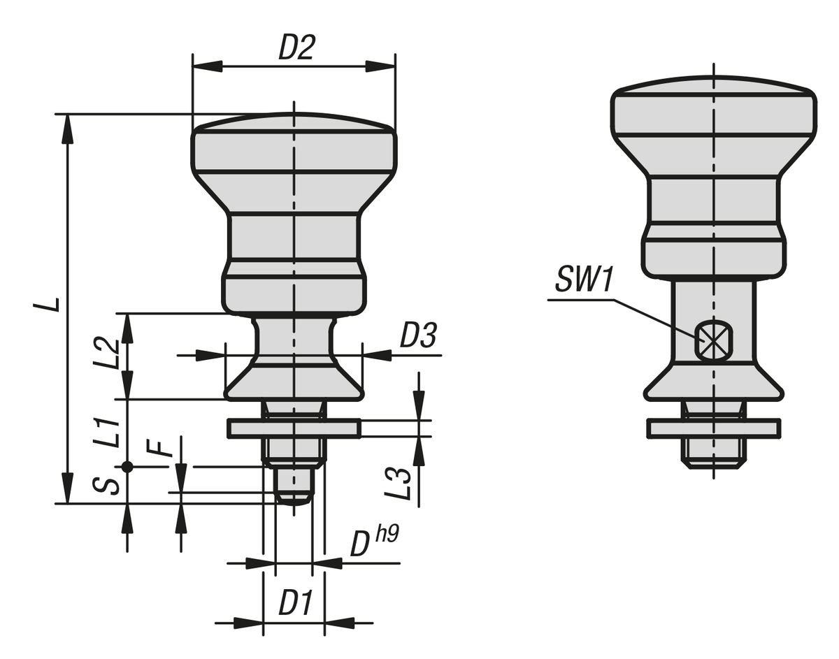 Doigt d’indexage en inox pour rondelles d’étanchéité Hygienic USIT® avec bouton de manœuvre en inox