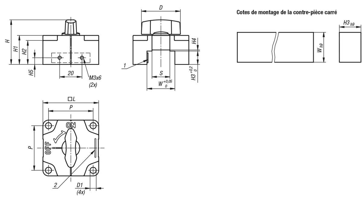 Si le verrou de serrage est vissé à la cale de blocage (21888-15) ou à un élément rapporté, il peut être coulissé sur un profil carré.